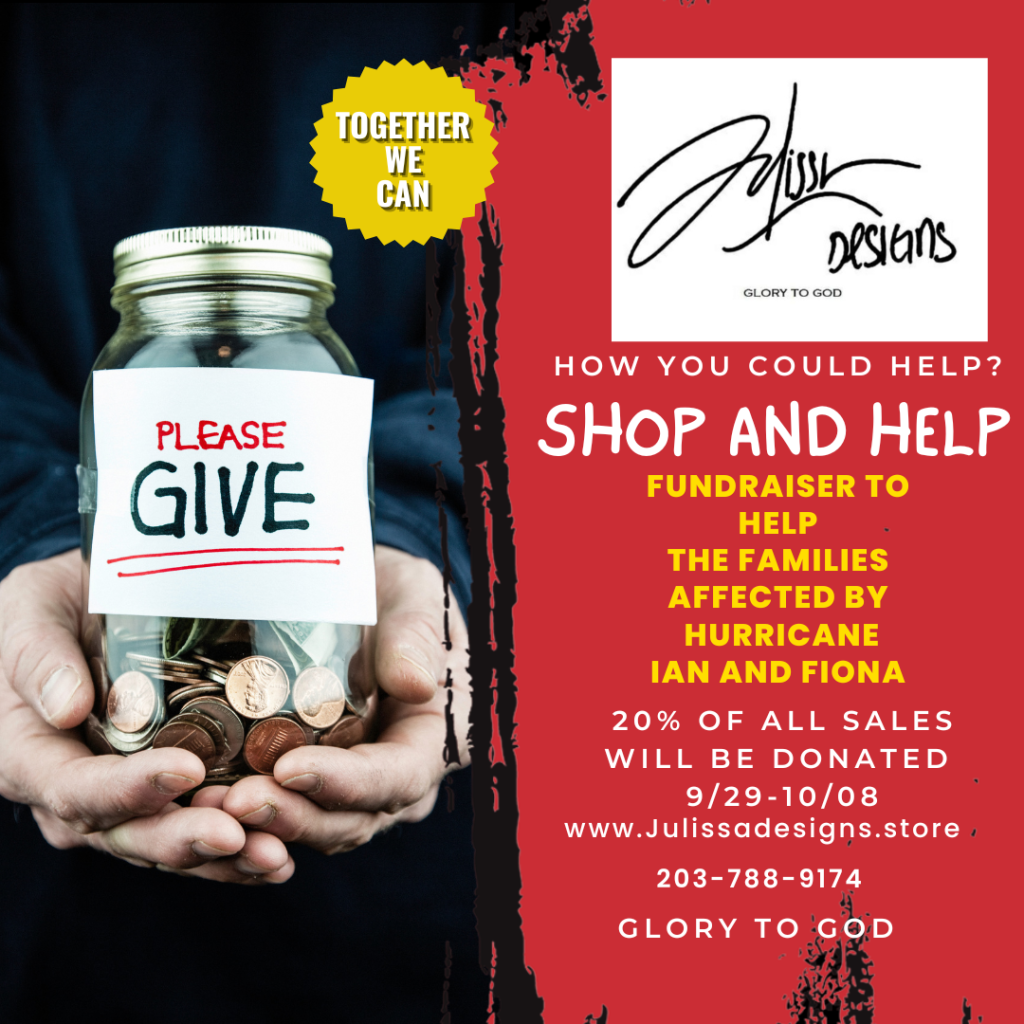 Fashion designer Julissa Cadena of Danbury CT is doing a fundraiser event to benefits the families affected by the recent hurricanes . From September 29th to October 7th 20% of all sales will be donated, Shop online http://www.julissadesigns.store